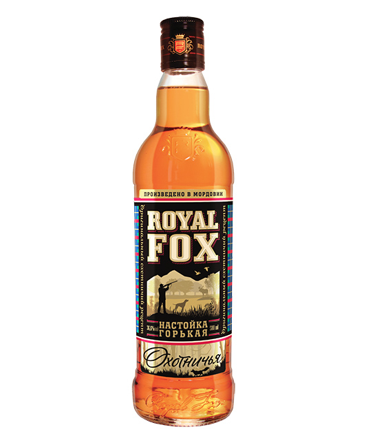 Royal Fox Hunting is an original tincture with a man's name, created by a special recipe. Only high quality natural ingredients, carefully selected, were used in its production. It is an alcoholic drink with characteristic sharpness, spiciness and bitterness, which gives a powerful charge, warms with warmth and has a persistent invigorating effect. It goes well with game, spicy meat dishes and fish snacks.